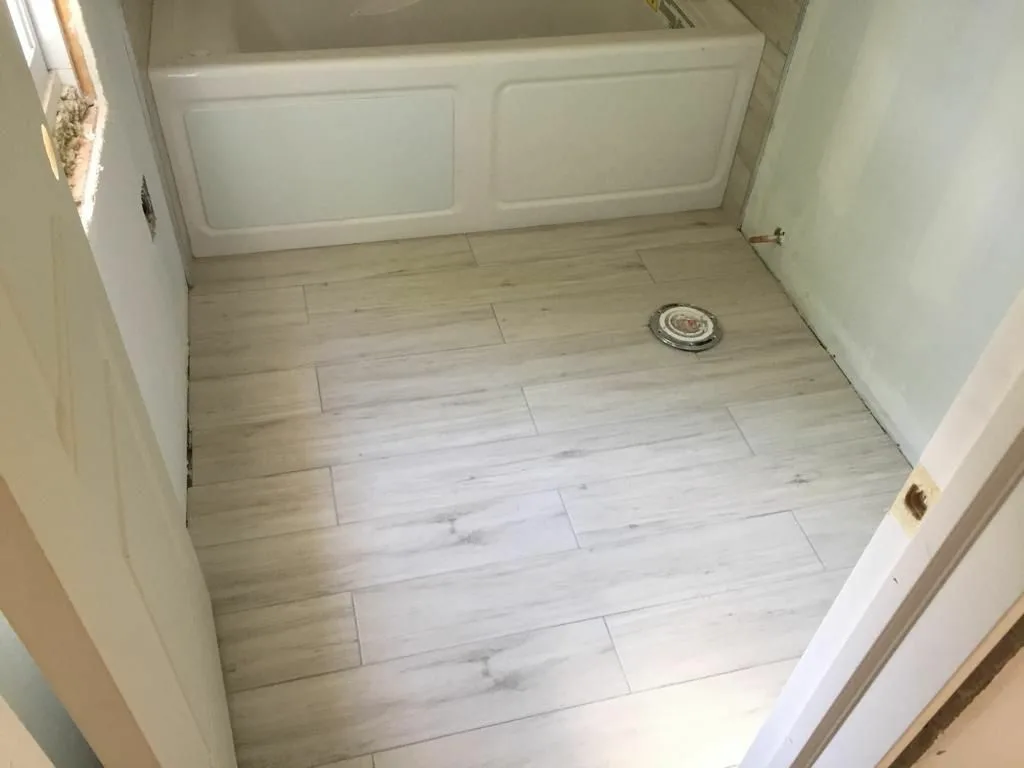 Bathroom Floor Tile Installation with Wood-Look Porcelain